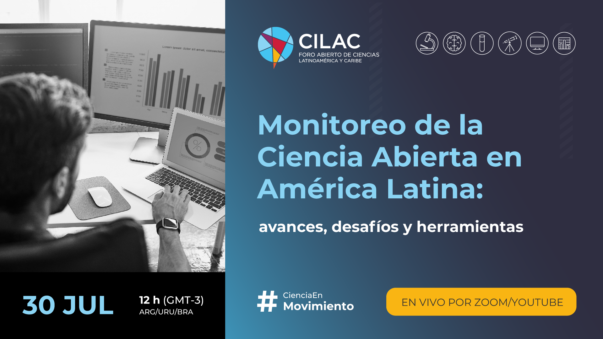 El Foro CILAC convoca a un nuevo coloquio del ciclo Ciencia en Movimiento, enfocado en el monitoreo de la Ciencia Abierta en América Latina. El evento, que se llevará a cabo el próximo 30 de julio a las 12 h (GMT-3) en formato virtual y gratuito, reunirá a destacadas personalidades del ámbito científico y de políticas públicas para reflexionar sobre los principales avances y retos en el seguimiento de esta agenda estratégica para la región.