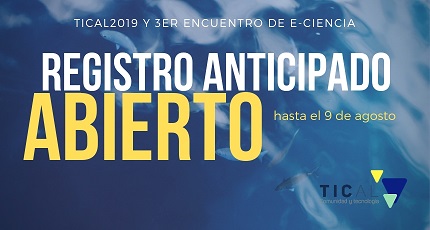 Early bird registration: Register and guarantee your participation in the TICAL2019 Conference and the 3rd Latin American Meeting of e-Science
