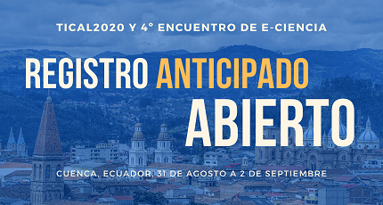 The Organizing Committee of the TICAL2020 Conference and the 4th Latin American e-Science Meeting announced this Monday, March 8, the opening of the early bird registration period for the two events, which will be held in Cuenca, Ecuador, between August 30 and September 2.