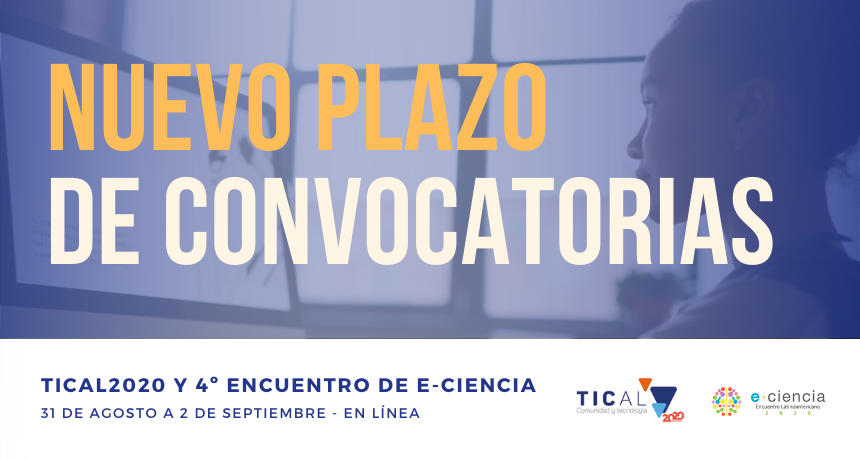 May 11, at 24:00 GMT: This is the new deadline date and time for the submission of papers for the calls of the TICAL Conference and the 4th Latin American e-Science Meeting, which will take place online between August 31 and September 2.