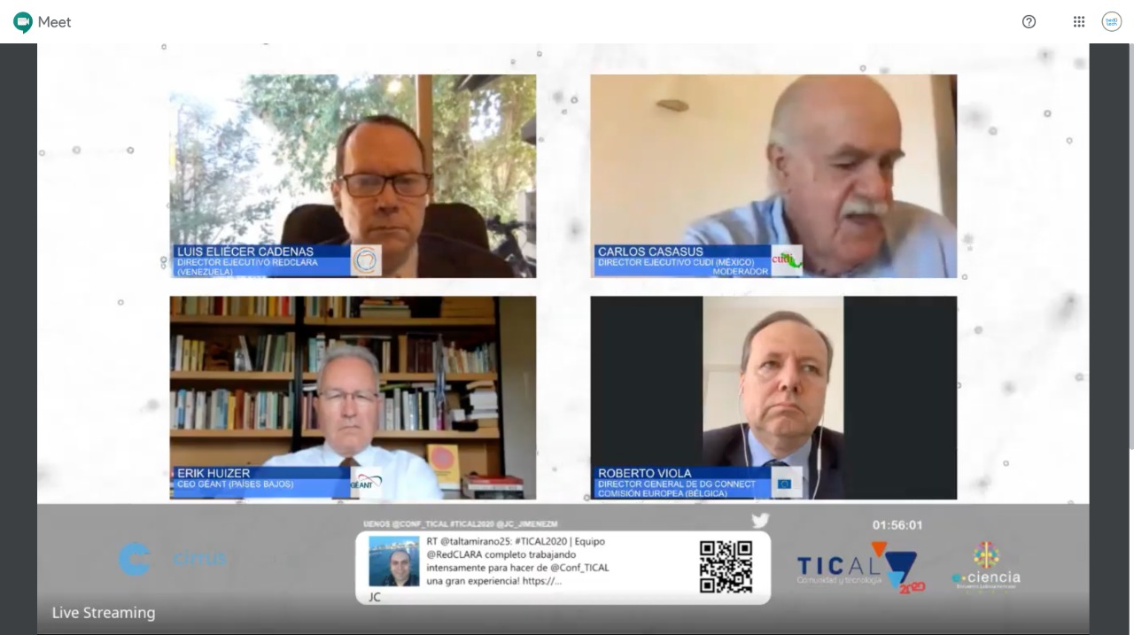 “At RedCLARA, and I am sure that in the community of our networks, we believe that the place to initiate this change is education. We need to invest in education and create and strengthen the tools to make that investment as effective as possible. With such levels of underinvestment, our organizations have an important story to tell and relevant contributions to make. The academic networks of the world are a role model, they have a mode of action, an ethos, that show the potential of our species when guided by the right emotions. The world of networks, we have endeavoured to put people forward, to allow them not only to continue with their lives, but to advance, and that is something that gives hope and strength to face everything the hardest, more than technological networks, we are a VERY HUMAN network ”. These heartfelt words from the Executive Director of RedCLARA, Luis Eliécer Cadenas, were part of the opening speech of the tenth edition of TICAL and the fourth of the Latin American e-Science Meeting that began today at 14:00 GMT online on the https://tical2020.redclara.net/.