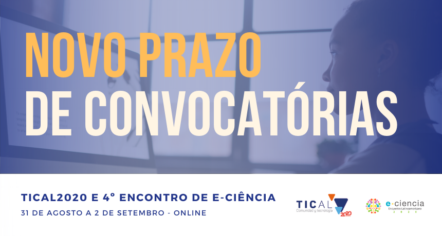 A decisão de estender os prazos de 20 de abril para 11 de maio, tomada pela Equipe Organizadora e pelo Comitê de Programa dos eventos, dará aos interessados mais tempo para preparar e enviar seus trabalhos. Dado o cenário imposto pela pandemia do COVID-19, TICAL e “e-Ciência” continuarão sendo realizados em conjunto, mas agora virtualmente, por videoconferência (em breve será informada qual plataforma a RedCLARA escolherá para isso).