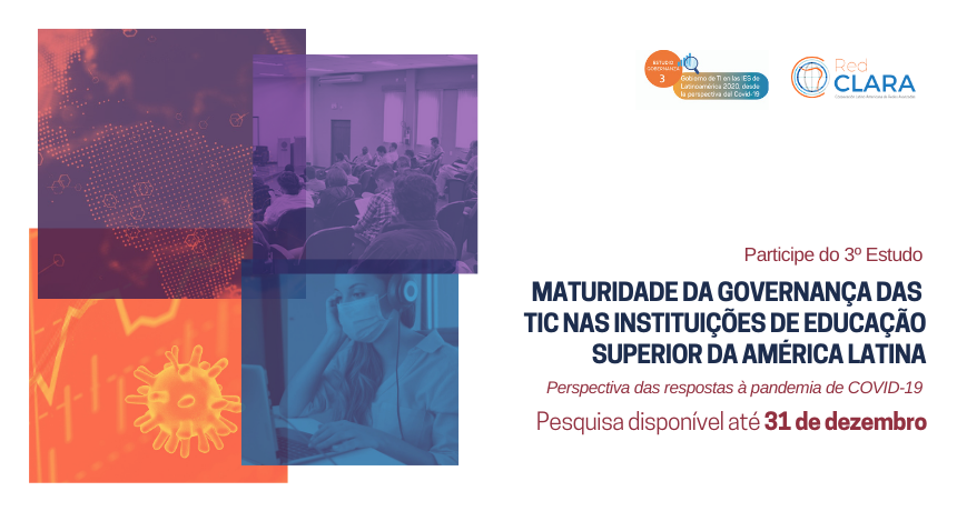 A pandemia exigiu de nós a implementação de novas formas de trabalho e colaboração. Especificamente no contexto das Instituições de Educação Superior (IES) da América Latina, essa mudança impôs grandes desafios para as direções e departamentos de tecnologias da informação e comunicação. Para conhecer estes desafios e as soluções implementadas em cada caso, convidamos você para participar no 3º Estudo “Maturidade da Governança das Tecnologias da Informação e Comunicação nas Instituições de Educação Superior da América Latina”.